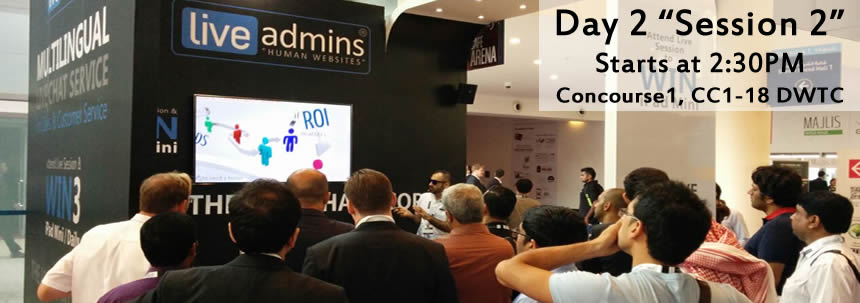 Live Chat Demo by LiveAdmins will be starting within the next 30 minutes at their booth (concourse 1, CC1-18) at the Gitex Technology week 2014. Join in.